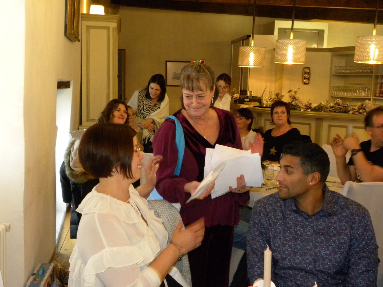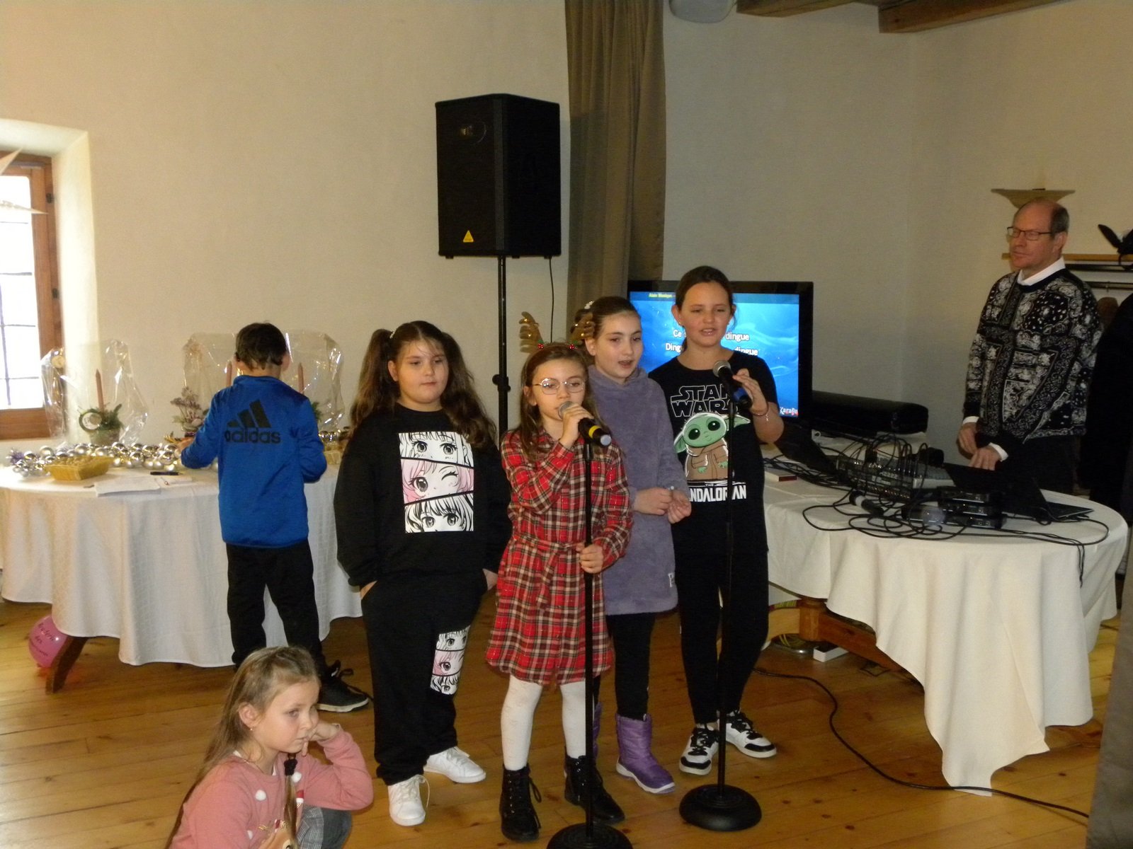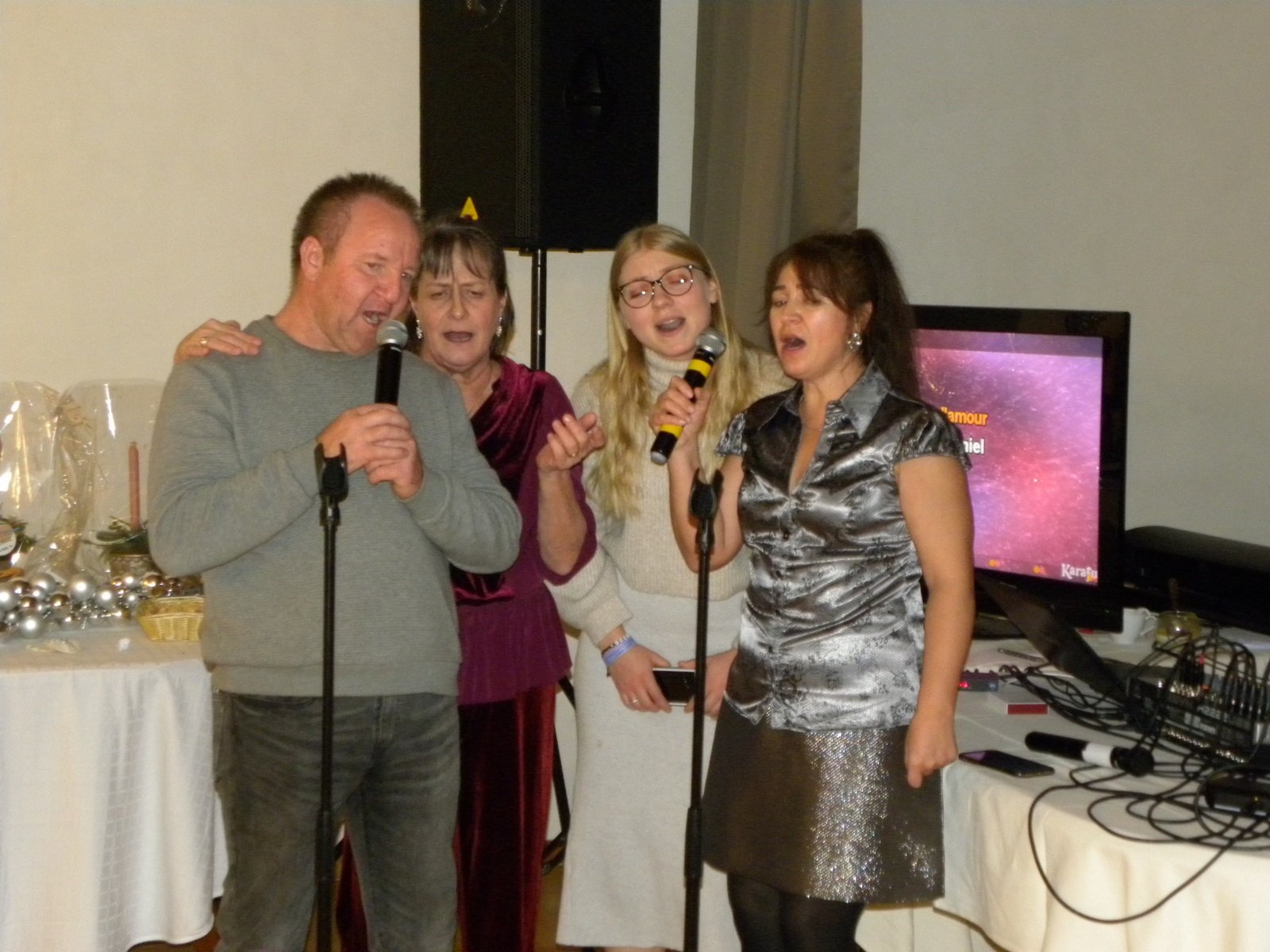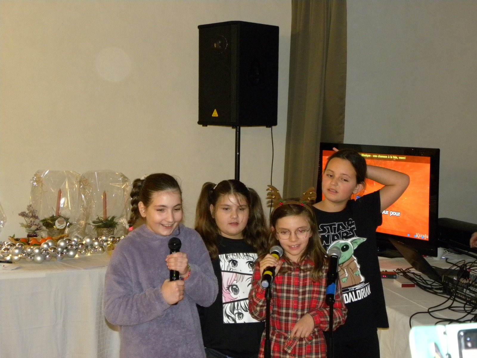 En effet, ce sont une septantaine de personnes, adultes et enfants, qui ont pu se réunir pour une journée magique. Des animations ont égayé la journée dont un bon repas, la venue du Père-Noël avec sa distribution de cadeaux, un mentaliste qui est passé de table en table, un concert de violon donné par un enfant soutenu par notre programme de soutien d’activités créatrices, sportives ou musicales ainsi qu’un karaoké a émerveillé petits et grands.